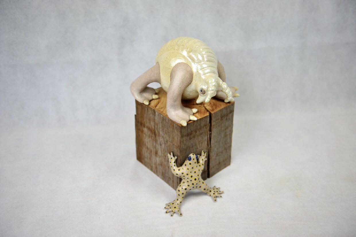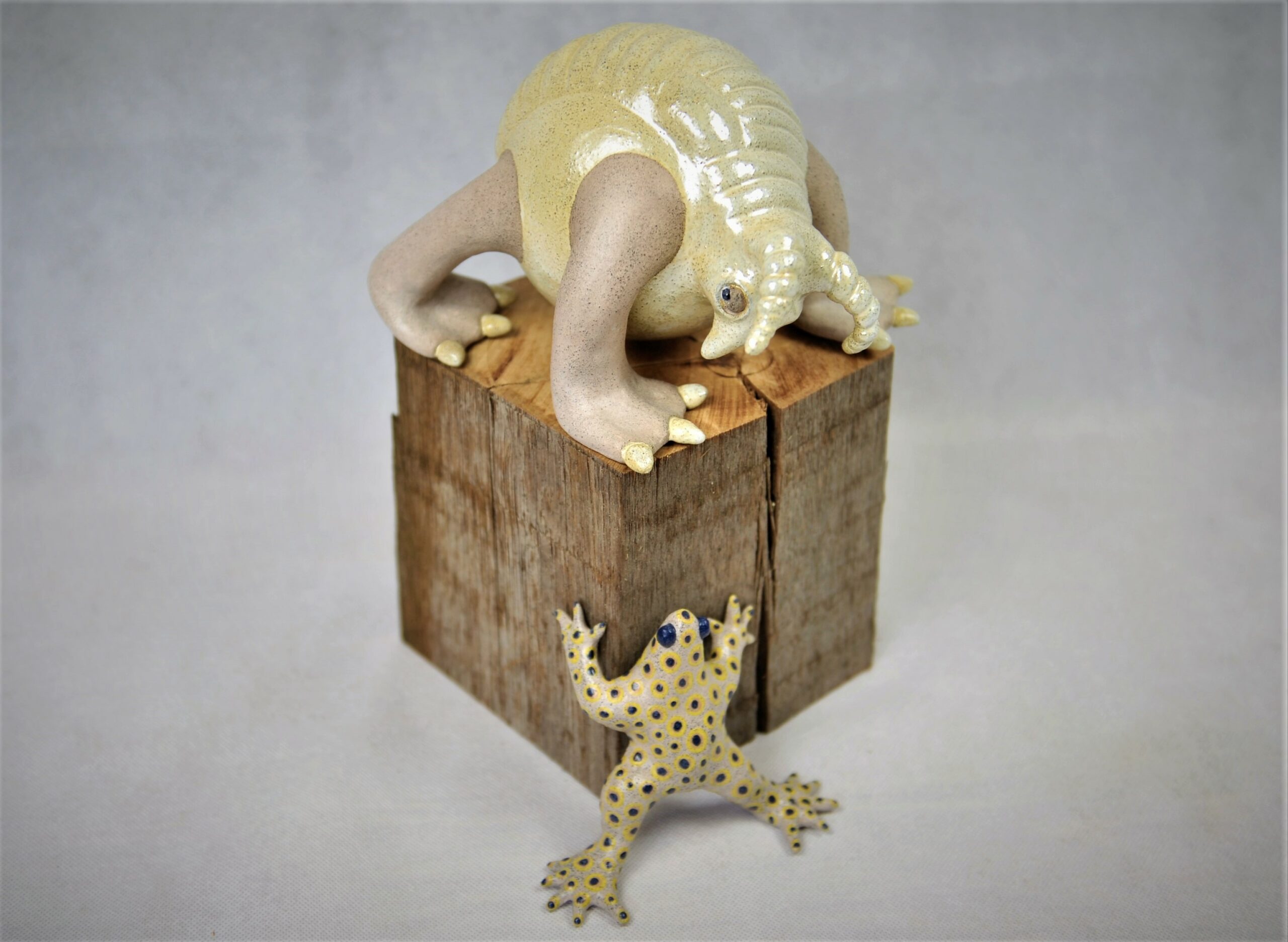 Delen in opbouw en delen uit mal. Werk is gemaakt van WMS 2005 GG klei. Afwerking is gedaan met glazuur en delen zijn onbewerkt gelaten. Details met engobe.