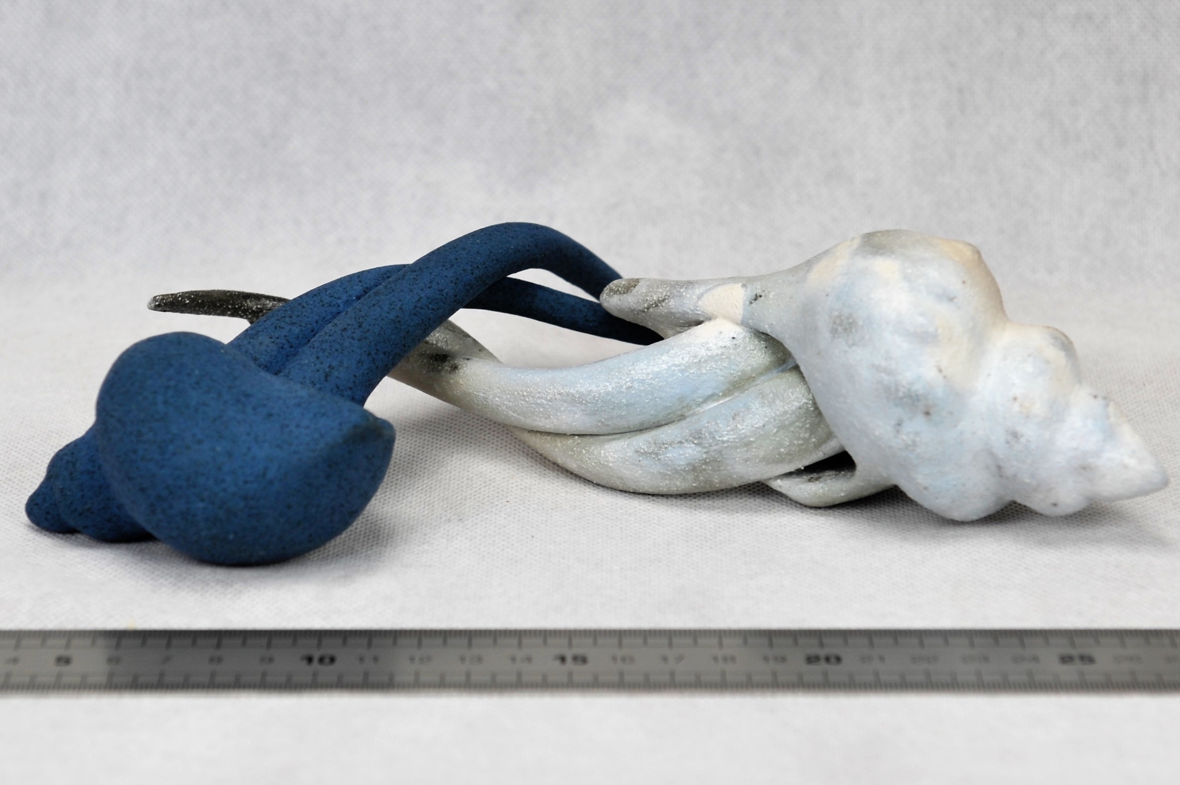 Een van de elementen is in een keramiekoven gestookt op een temperatuur van 1040 graden Celsius. Het andere element is in pitfire gestookt op een temperatuur van 1000 graden Celsius.