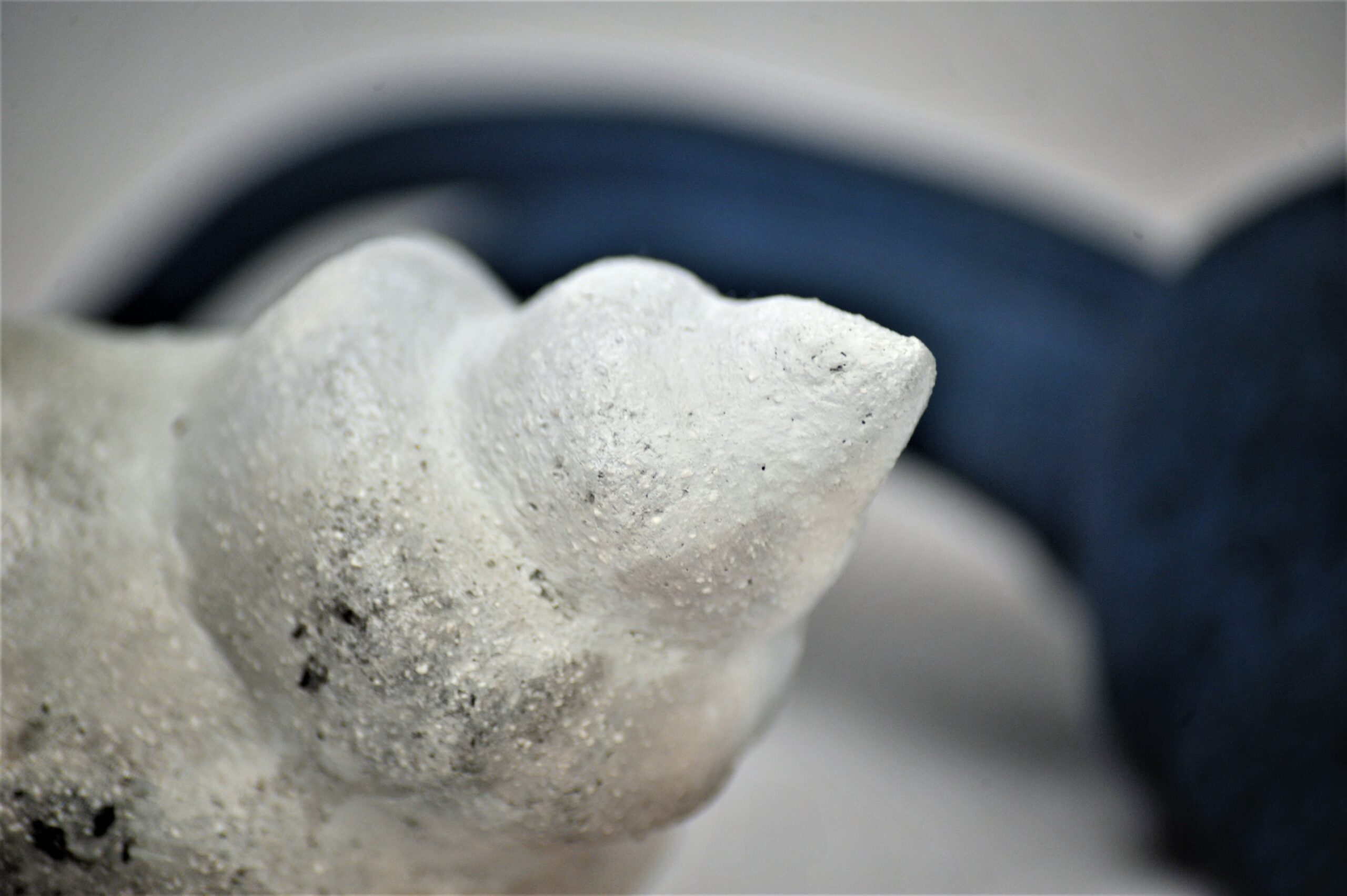 Opbouw bestaande uit platen K129 klei en met de hand geboetseerd. Afwerking is gedaan met sulfaat en sinterengobe.